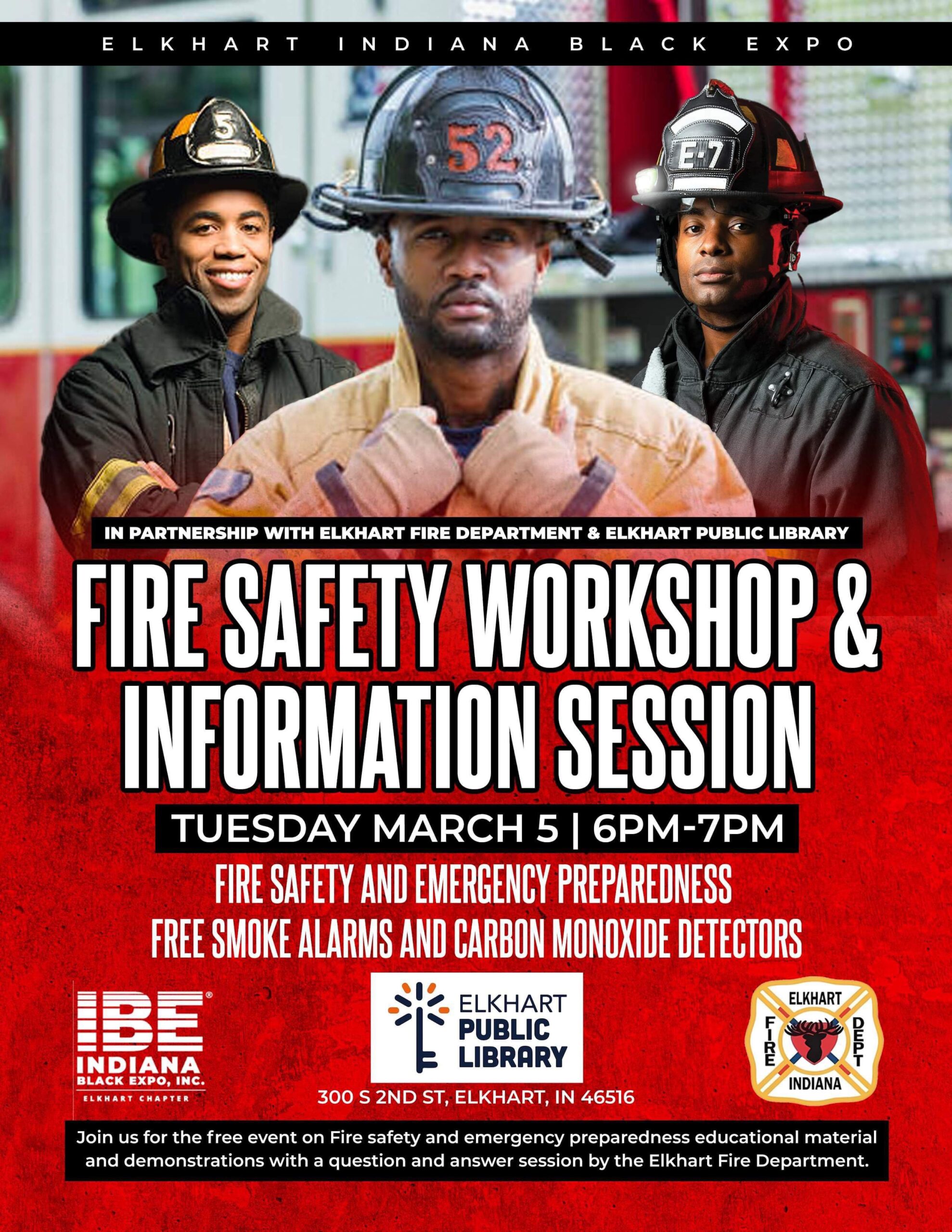 The Elkhart Chapter of the Indiana Black Expo, Elkhart Fire Department and EPL are hosting a free fire safety workshop. EPD will answer questions and provide safety information. Free smoke and carbon dioxide detectors will be available while supplies last.