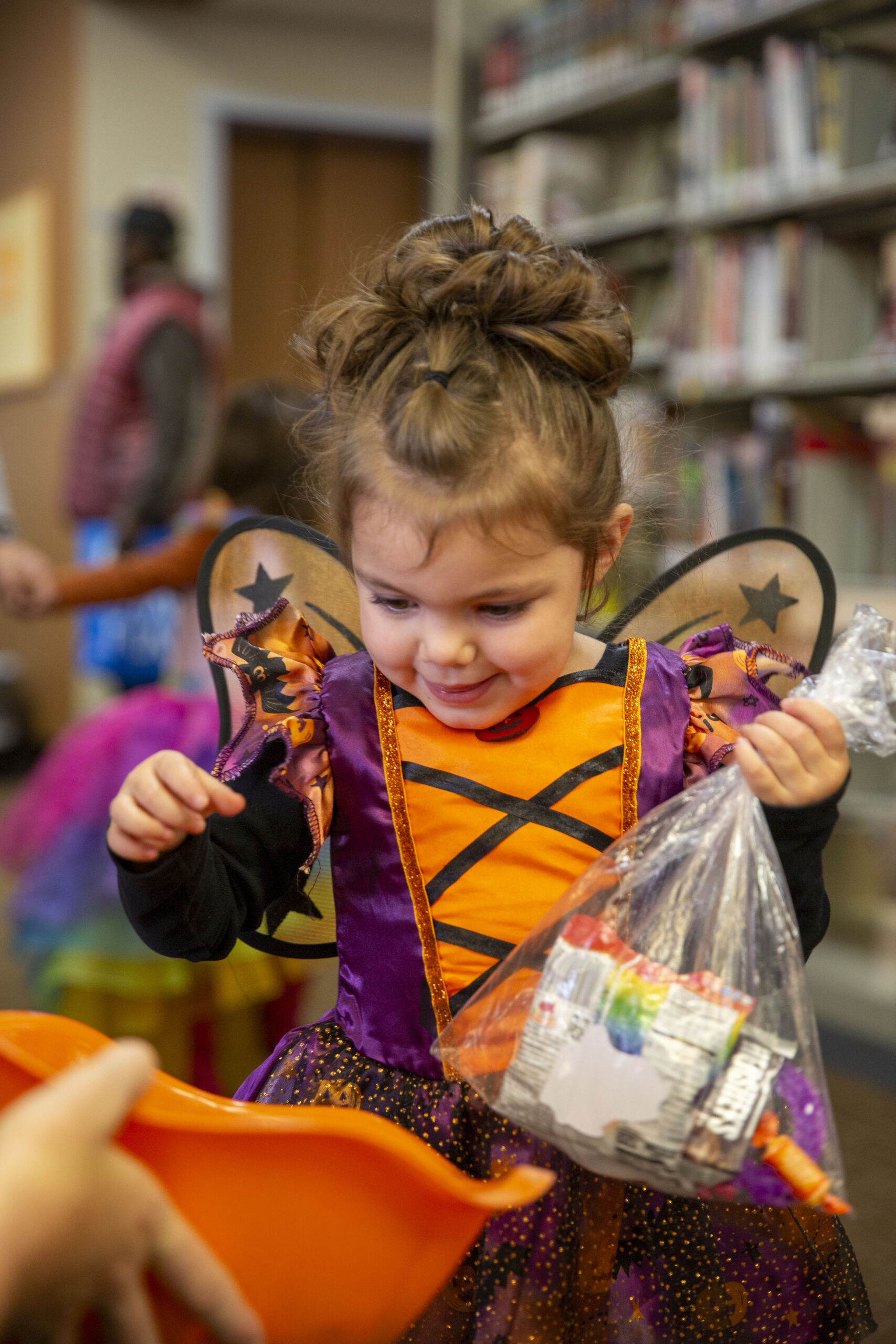 Preschoolers can come in their costumes for stories, rhymes and games. We finish with a walk around the building to collect candy.