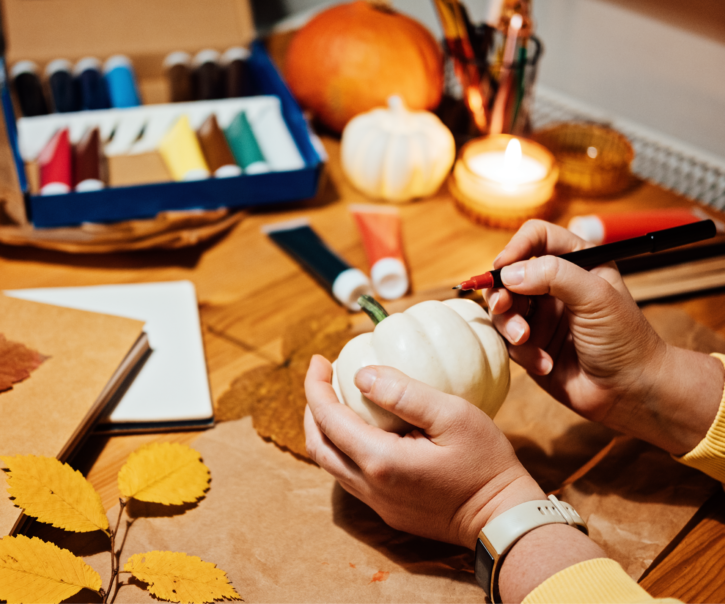 Drop into Pierre Moran to decorate a mini pumpkin with paints, pens and more while supplies last.