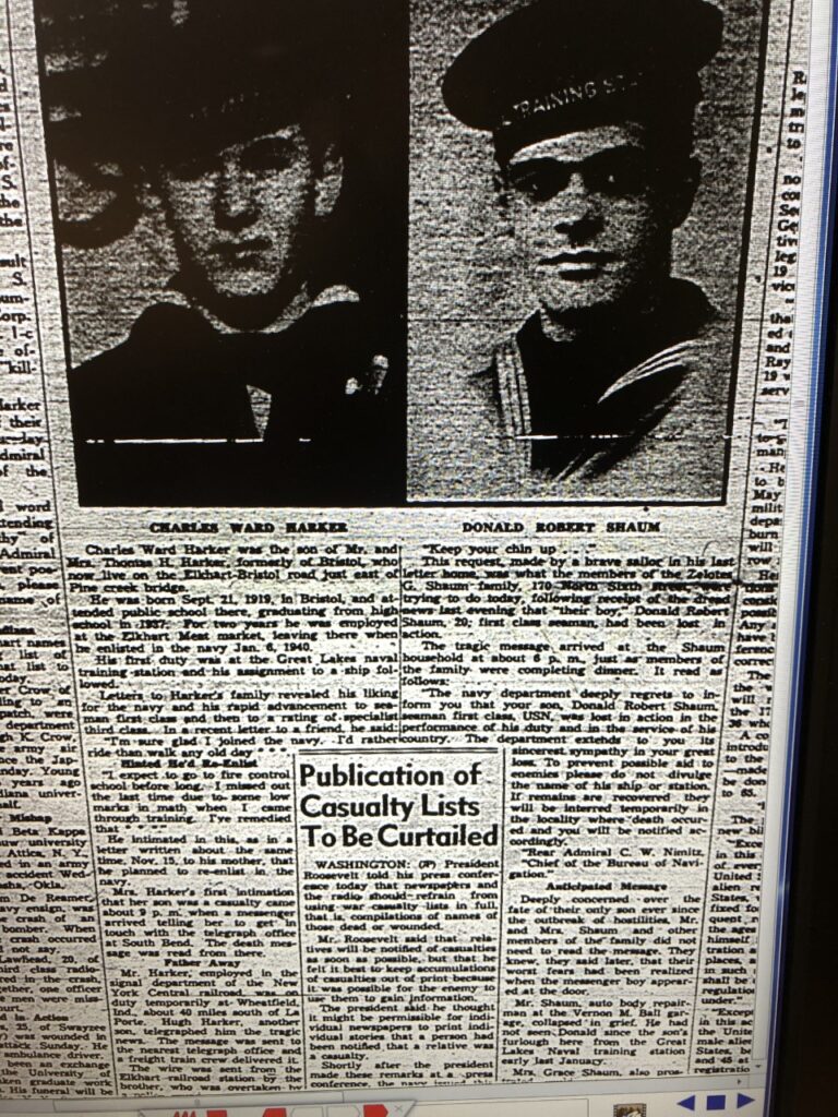 Elkhart grieved the loss of four local men killed at Pearl Harbor. One of the first stories to be shared was about Pvt. Robert Lee Schott. His parents told a Truth reporter the “news of his death arrived just two days after they had received a Christmas package from him” and they, in turn, were preparing to wrap a sweater to ship to him.