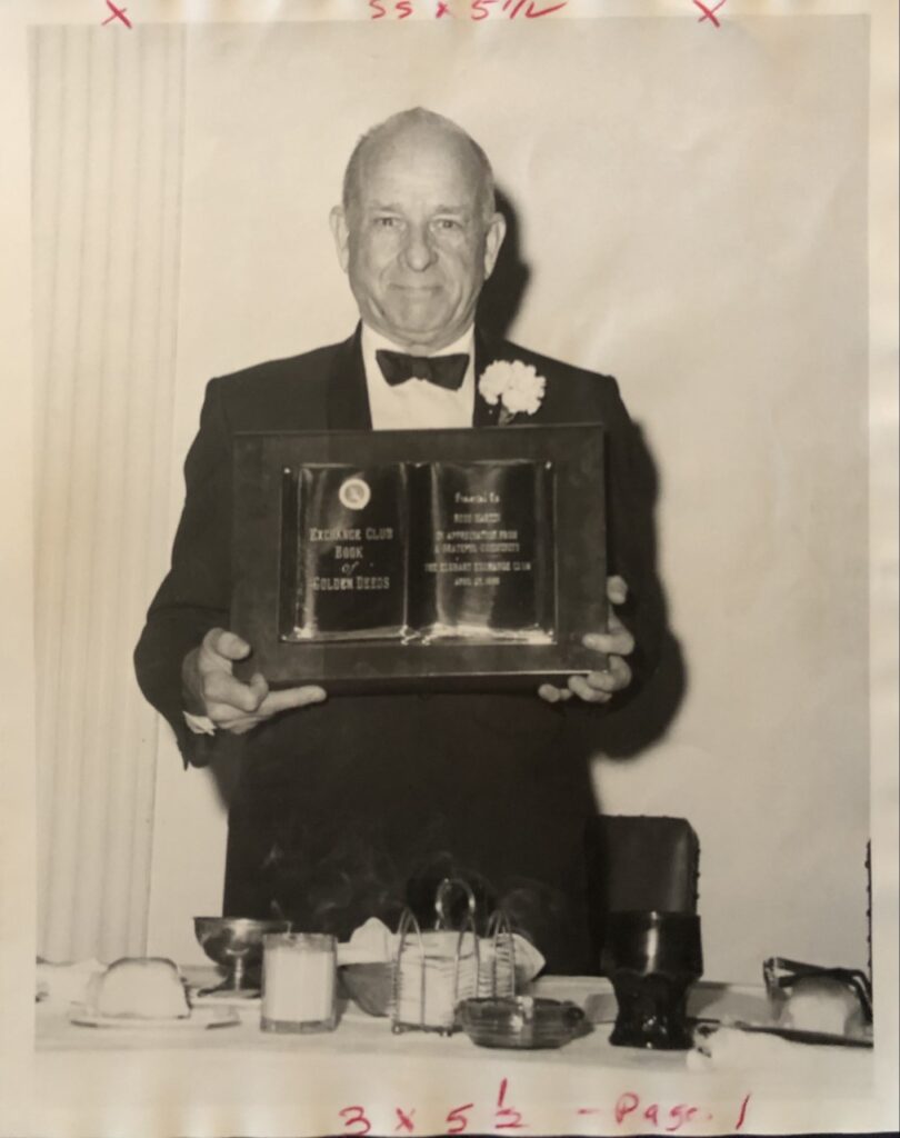 “Ross is proof that a man can stay vital and energetic by being interested in the world about him, and by having faith in God,” Peale said to the crowd of 400 gathered in Hotel Elkhart’s Athenian Ballroom for the Exchange Club’s Book of Golden Deeds Award ceremony.