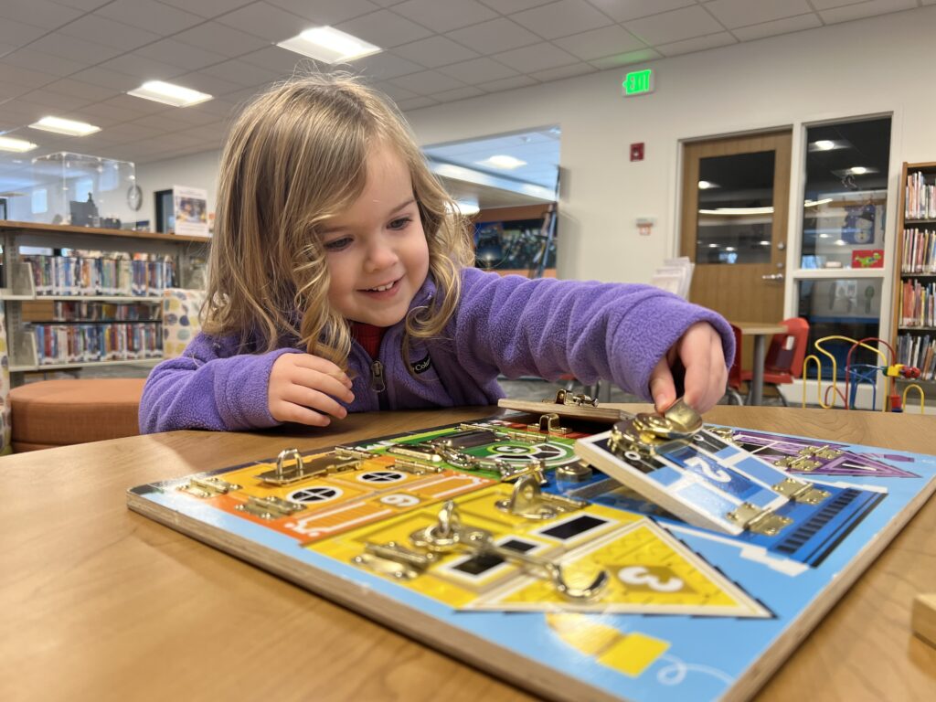 That’s another thing we love about going to the library. There are often other families with little kids when we visit, which gives Maya great opportunities to practice meeting new people and grow her social skills.