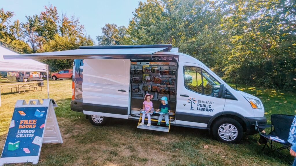 The Book Bus appeared across the area at events like the Elkhart County 4-H Fair, Elkhart City Parks and Recreation neighborhood socials, back-to-school events with the Elkhart Chapter of Indiana Black Expo, and the Minority Health Coalition. Library staff also held pop-up events to bring services directly to neighborhoods.