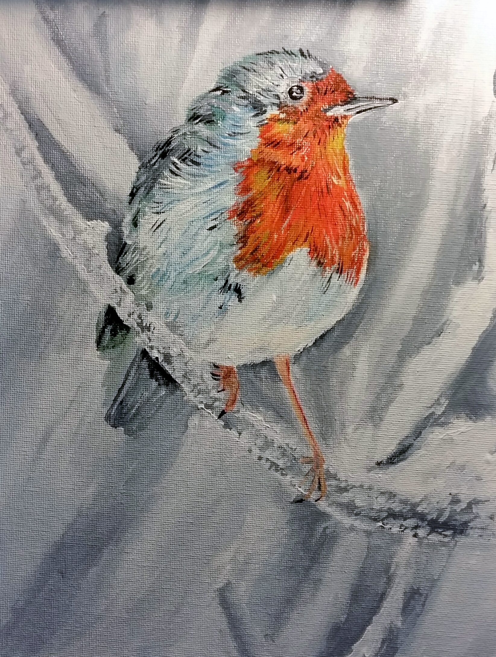 Local artist Linda Pieri leads a painting class. This month we’re creating a snowbird.