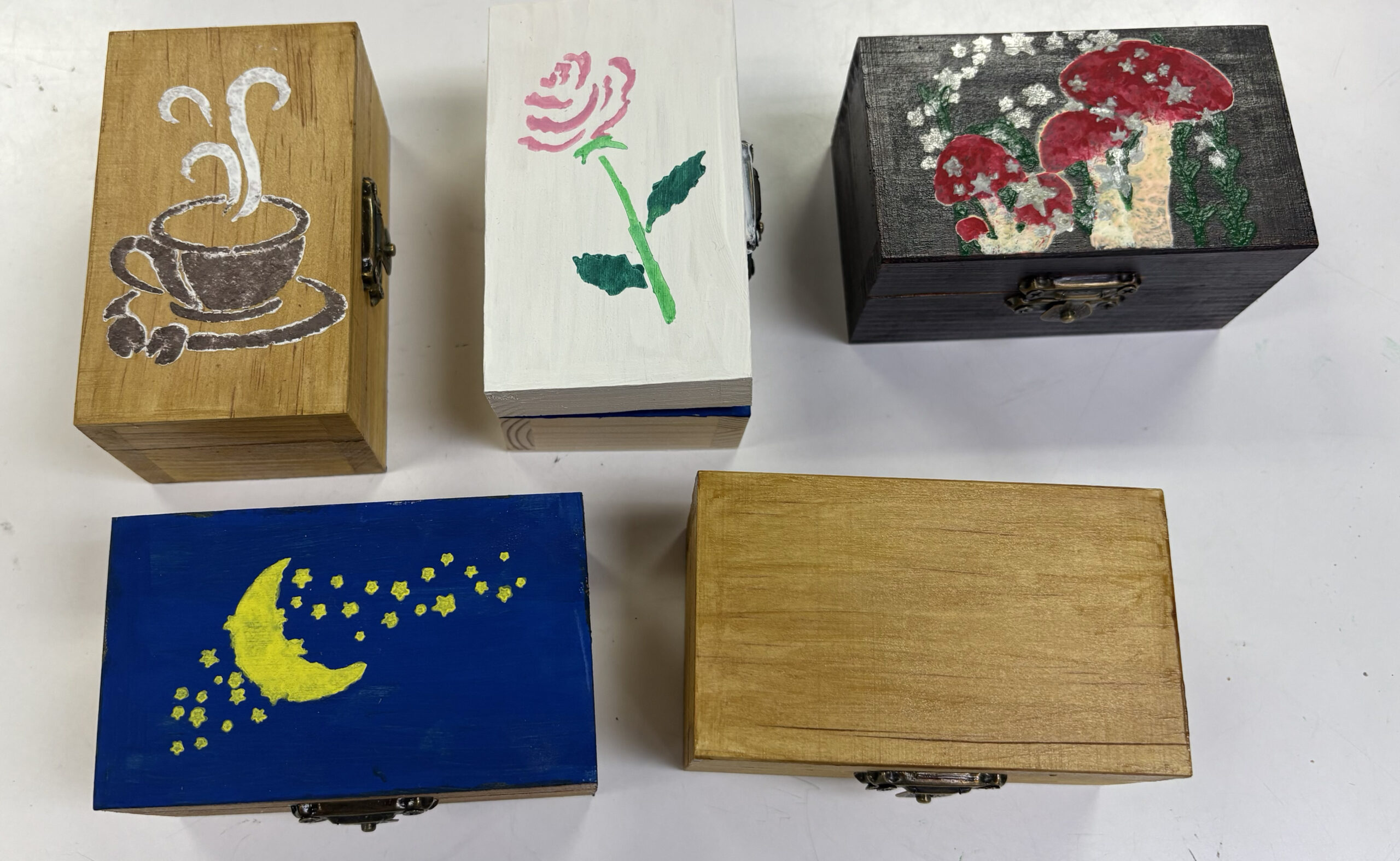 Meet others while learning new craft skills and getting creative.   Nov. 19 – Stenciled jewelry box