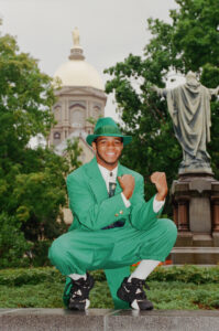 Mike was used to putting out positive energy from his time as the first Black leprechaun mascot at Notre Dame.